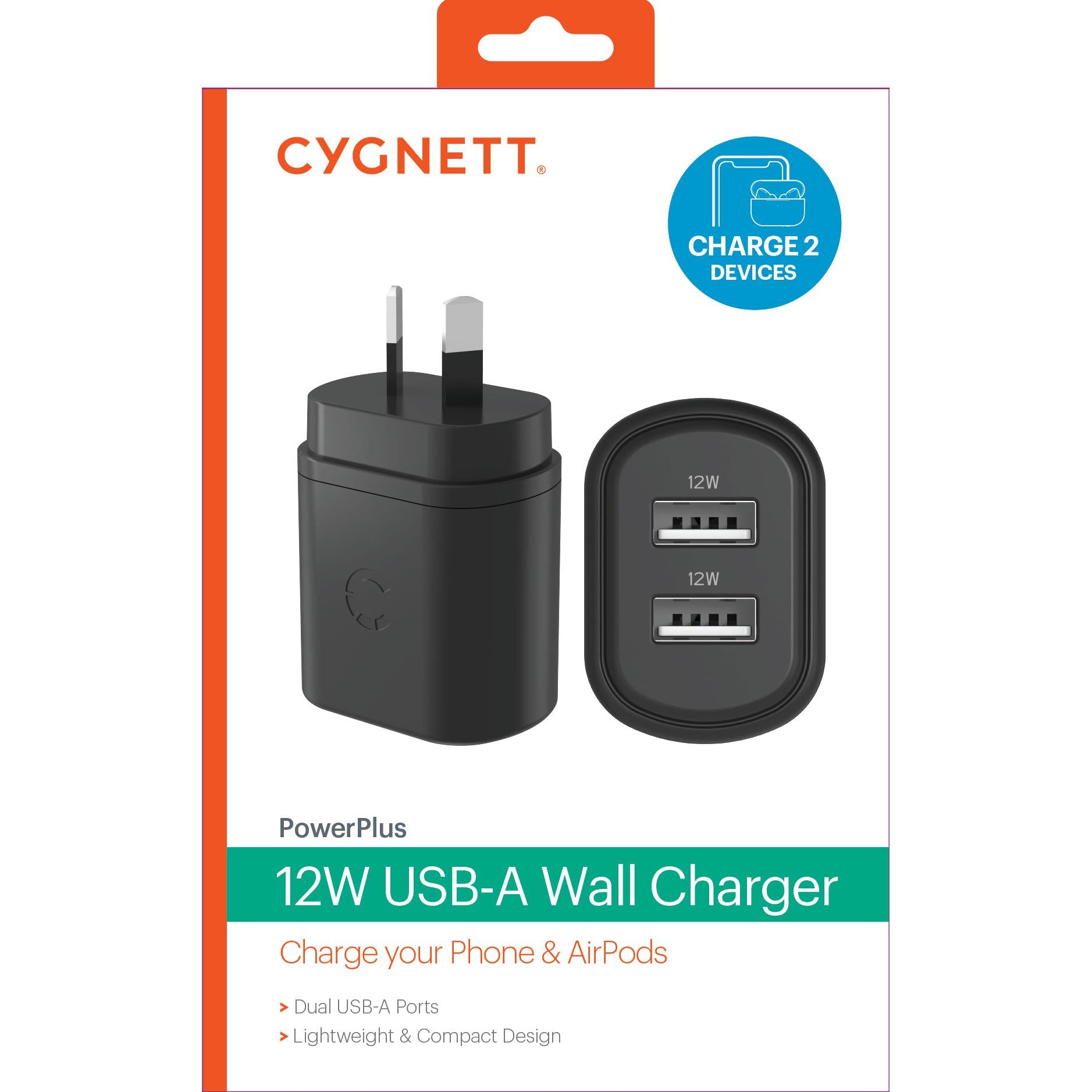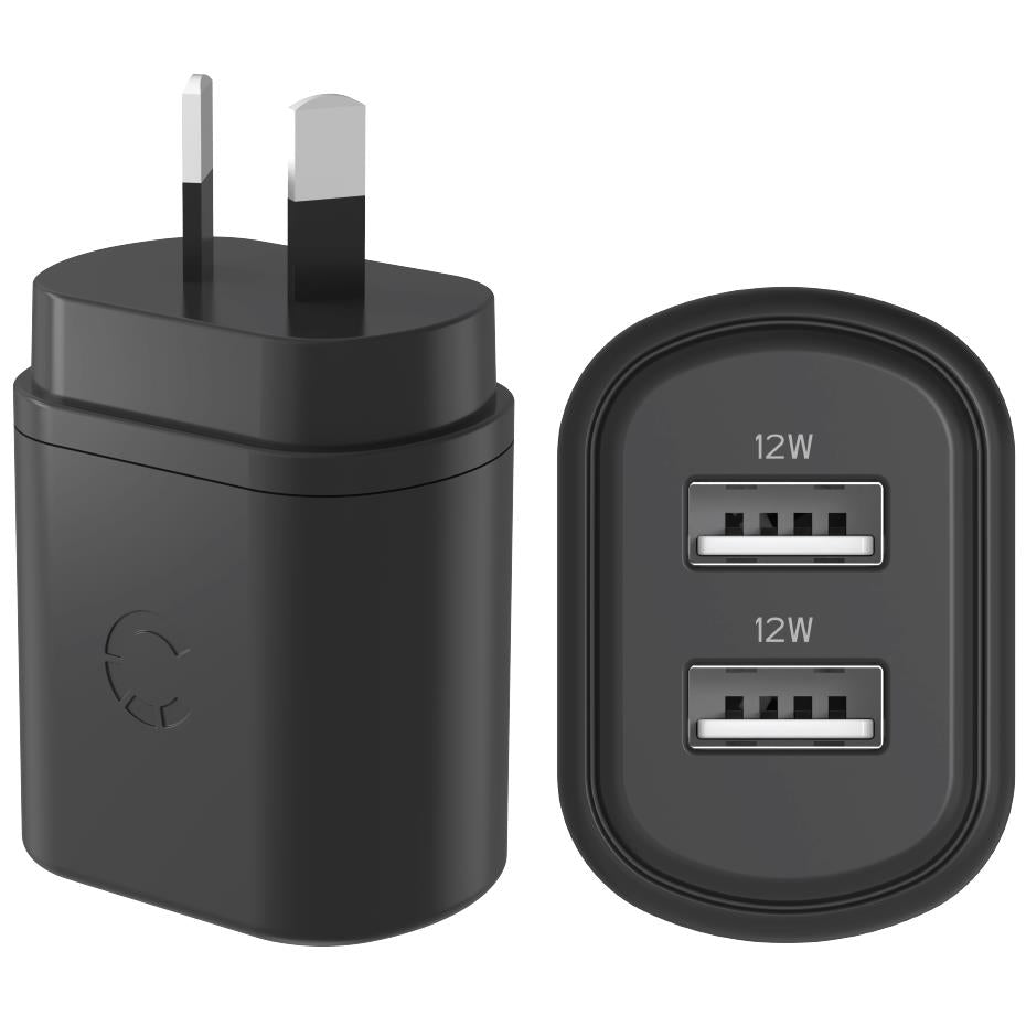 Cygnett PowerPlus 12W Dual Port Wall Charger (Black)