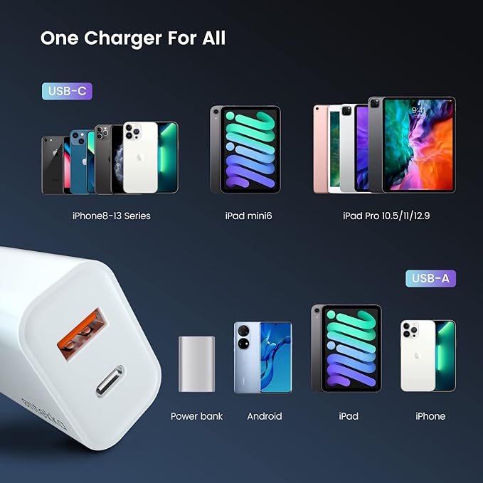 Ontekka Dual QC3.0 Wall Charger Plug 20W USB C Fast Phone Charger