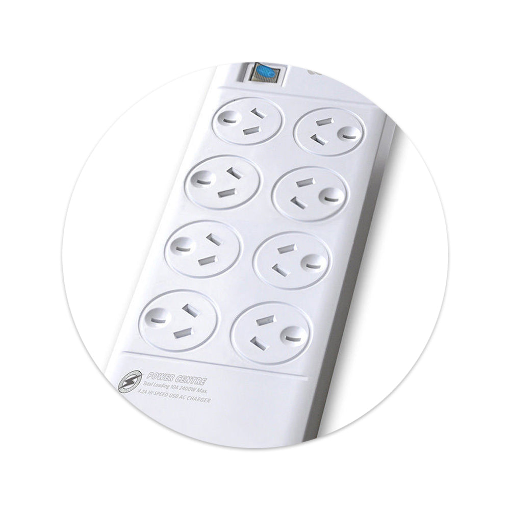 Power Board with 8 Outlets, 4 USB Charging Ports & Surge Protector